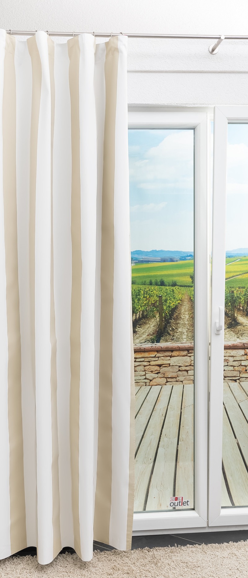 - Ein Vorhang aus abdunkelndem Stoff inkl. Saumband zum Aufbügeln