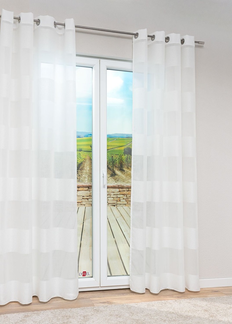 - Ein halbtransparenter Vorhang aus 100% Polyester.