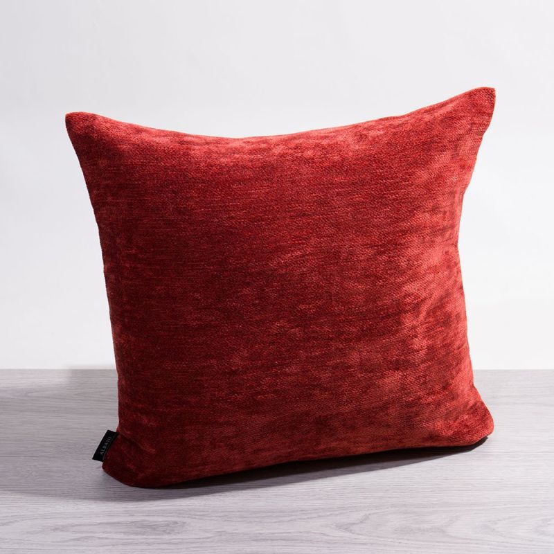 • Eine ziegelrote Kissenhülle aus 55 % Polyacryl/ 45 % Polyester ohne Inlett.