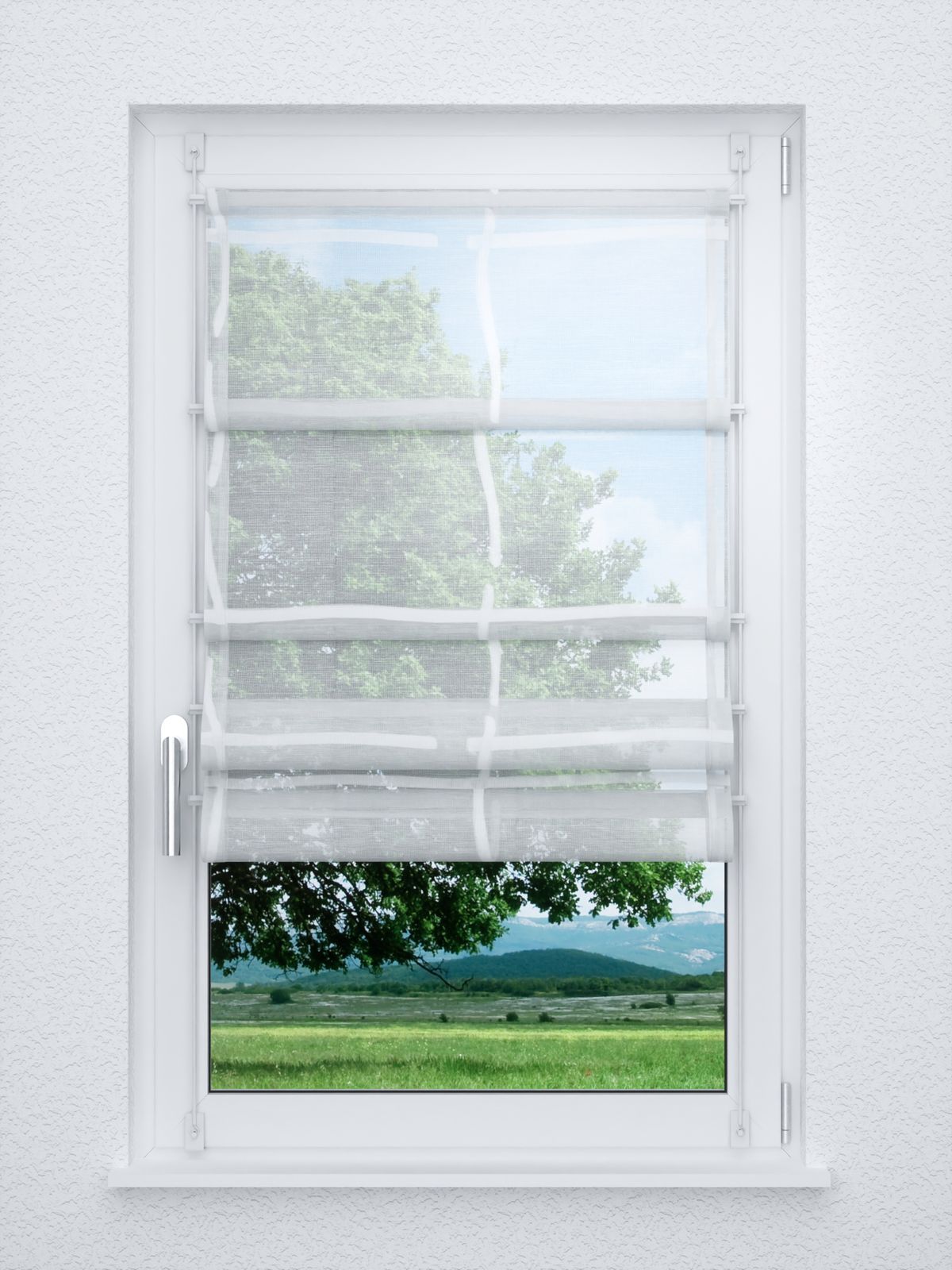 - Ein Raffrollo smart aus transparentem Stoff, 100% Polyester - individuell nach Ihren Wunschmaßen gefertigt. Geliefert wird der Artikel inklusive Befestigungsmaterial.