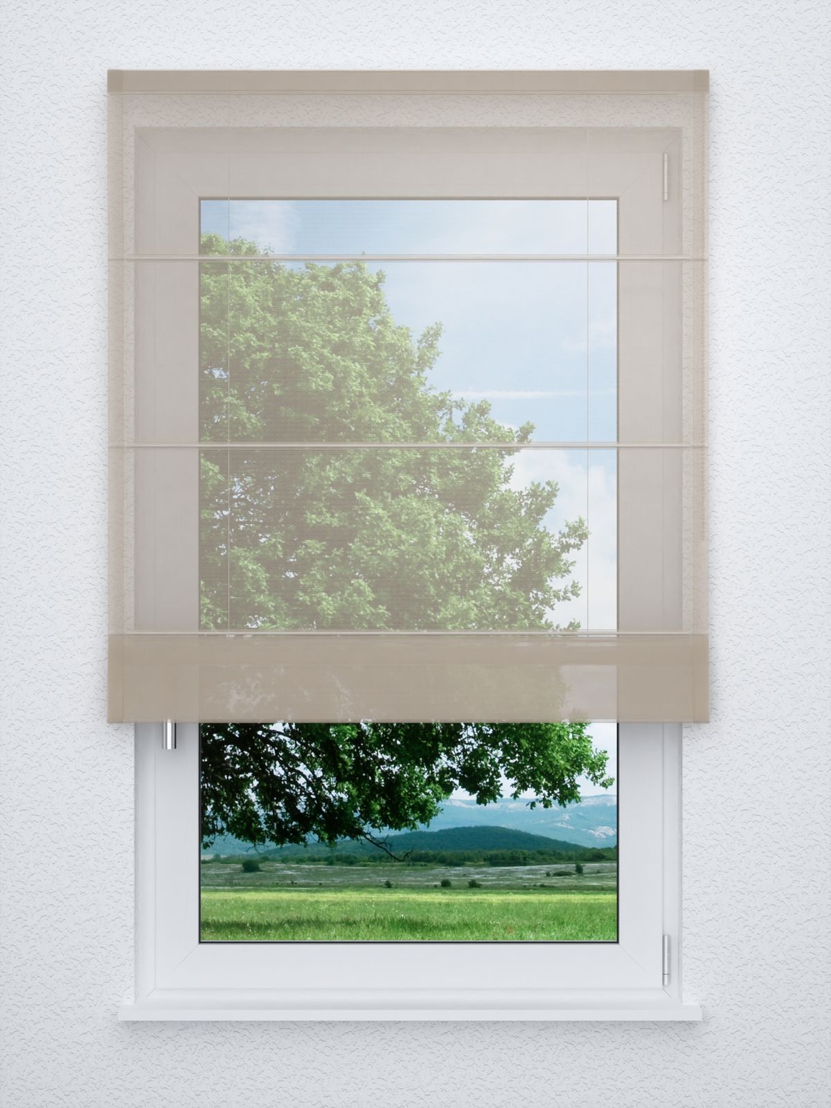 - Ein Raffrollo classic aus transparentem Stoff, 100% Polyester - individuell nach Ihren Wunschmaßen gefertigt. Geliefert wird der Artikel inklusive Befestigungsmaterial.