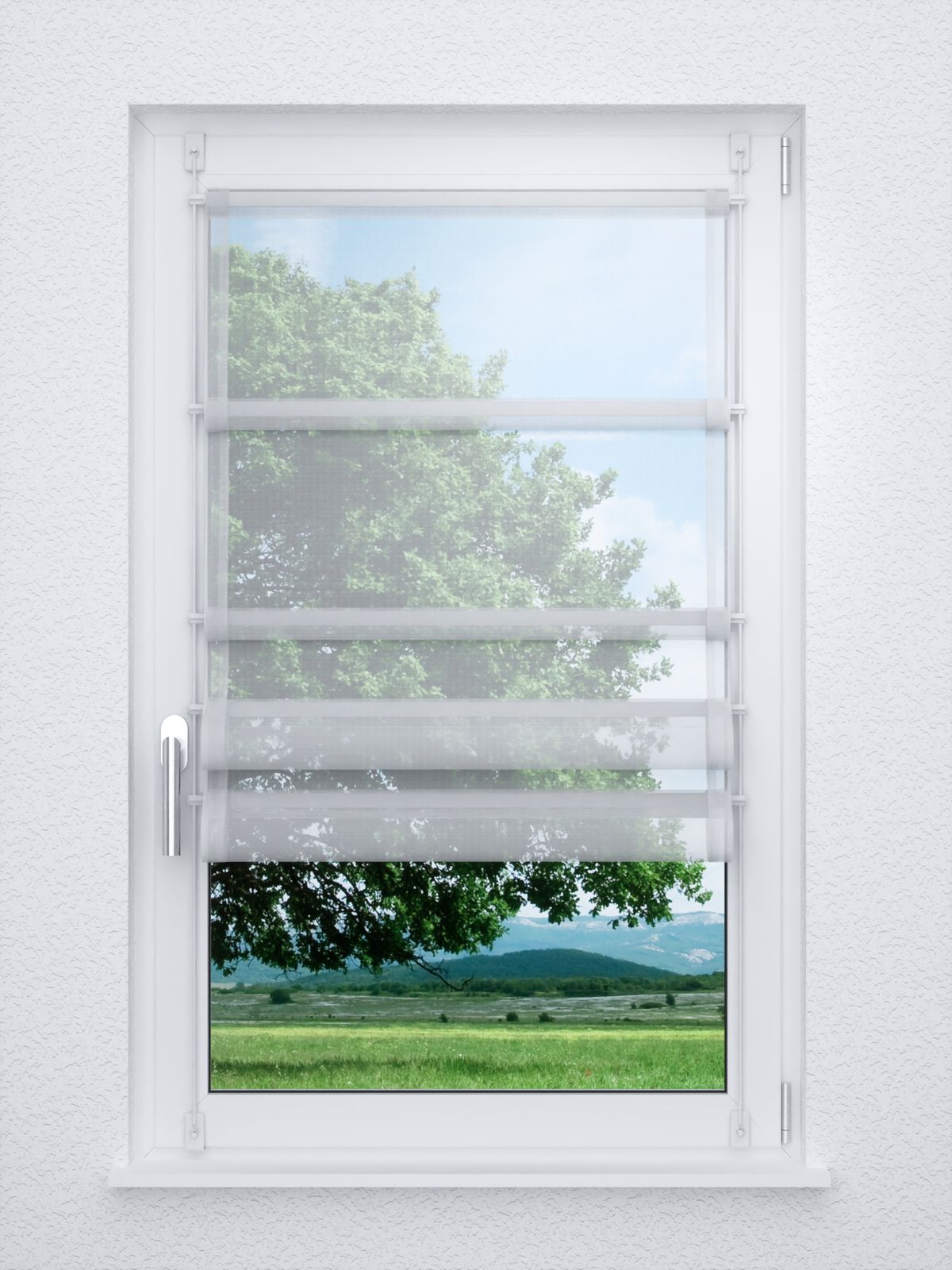 - Ein Raffrollo smart aus transparentem Stoff, 100% Polyester - individuell nach Ihren Wunschmaßen gefertigt. Geliefert wird der Artikel inklusive Befestigungsmaterial.